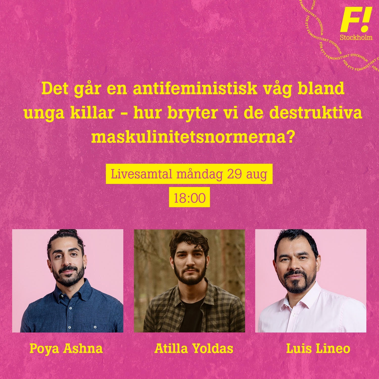 De kommer prata om deras egna erfarenheter under uppväxten, den antifeministiska utveckling hos många unga killar och hur vi kan motverka samt förebygga det individuellt, strukturellt och politiskt. Det vill ni inte missa! Går också att se på i efterhand på vår Instagram @fistockholm!